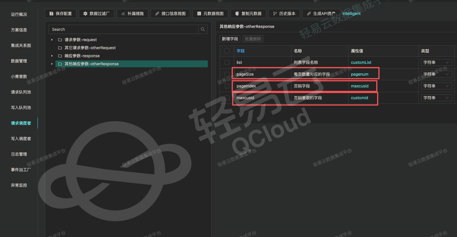 需要请求调度者中的其他响应参数,字段使用list,值根据接口对应字段来填写。