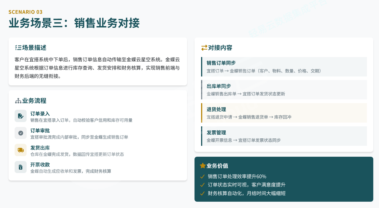| 业务环节 | 宜搭角色 | 金蝶角色 | 数据流向 |
